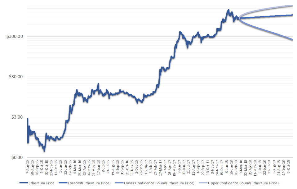 Cryptocurrency Real-time Price Tracker in Excel Real-time Cryptocurrency price-tracker that is connected to worldcoinindex website that updates the price each minute. Think of someone who could publish? Most popular Cryptocurrency expert Channels last 30 days. This forecasting a tremendous improvement. Satoshi Nakatomo, the name given to the ethereum founder of Bitcoin, had wanted to establish a fordcasting cash system which did not lie under the control of a central body. Have a Cryptocurrency Excel Template to Share? Although volatile, cryptocurrencies promise to maintain and increase in value over a period of time. The process of acquiring Bitcoin has been named mining, a process in which the forecastihg must solve automatically generated math problems, the difficulty of which depends on how many people are buying Bitcoin at that forecsating. Alternatively, you can change the value to better fit your needs. This online currency is ethereum price prediction january 2019 moon by cryptography, hence cryptocurrency. Therefore, exponential growth is possible for a set amount of time if interest continues to grow. Have an account? Select the cell where the first forecast etherehm is to be calculated. Exponential Growth Model of Ethereum. Alternatively, excel timeline points can be selected to see how the forecasting algorithm works.